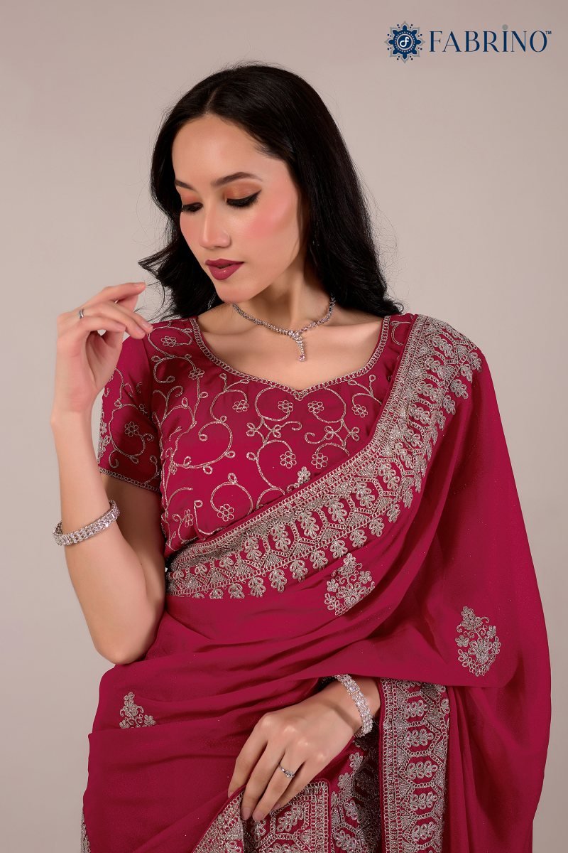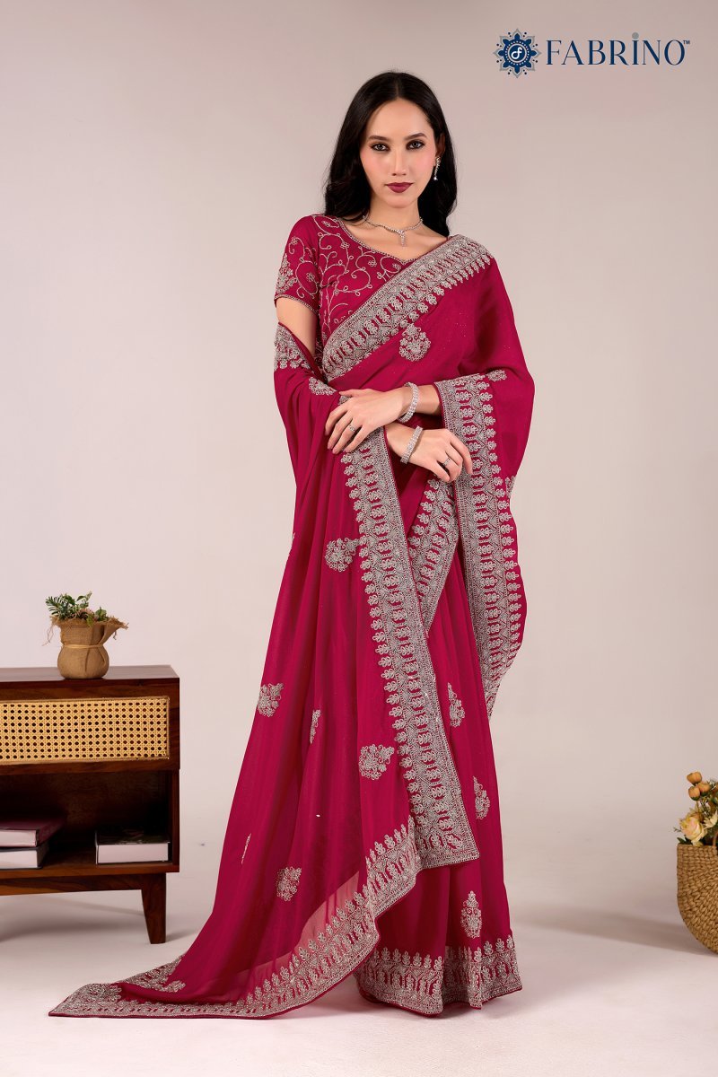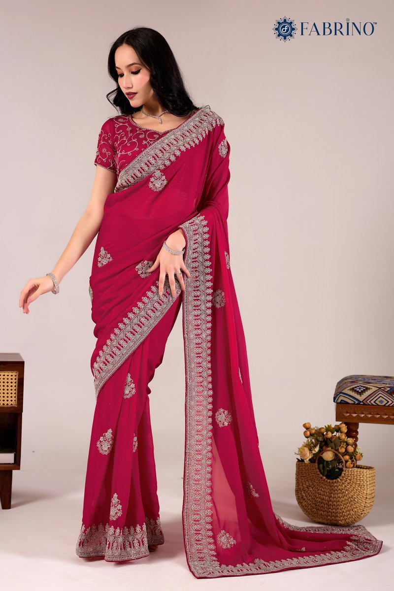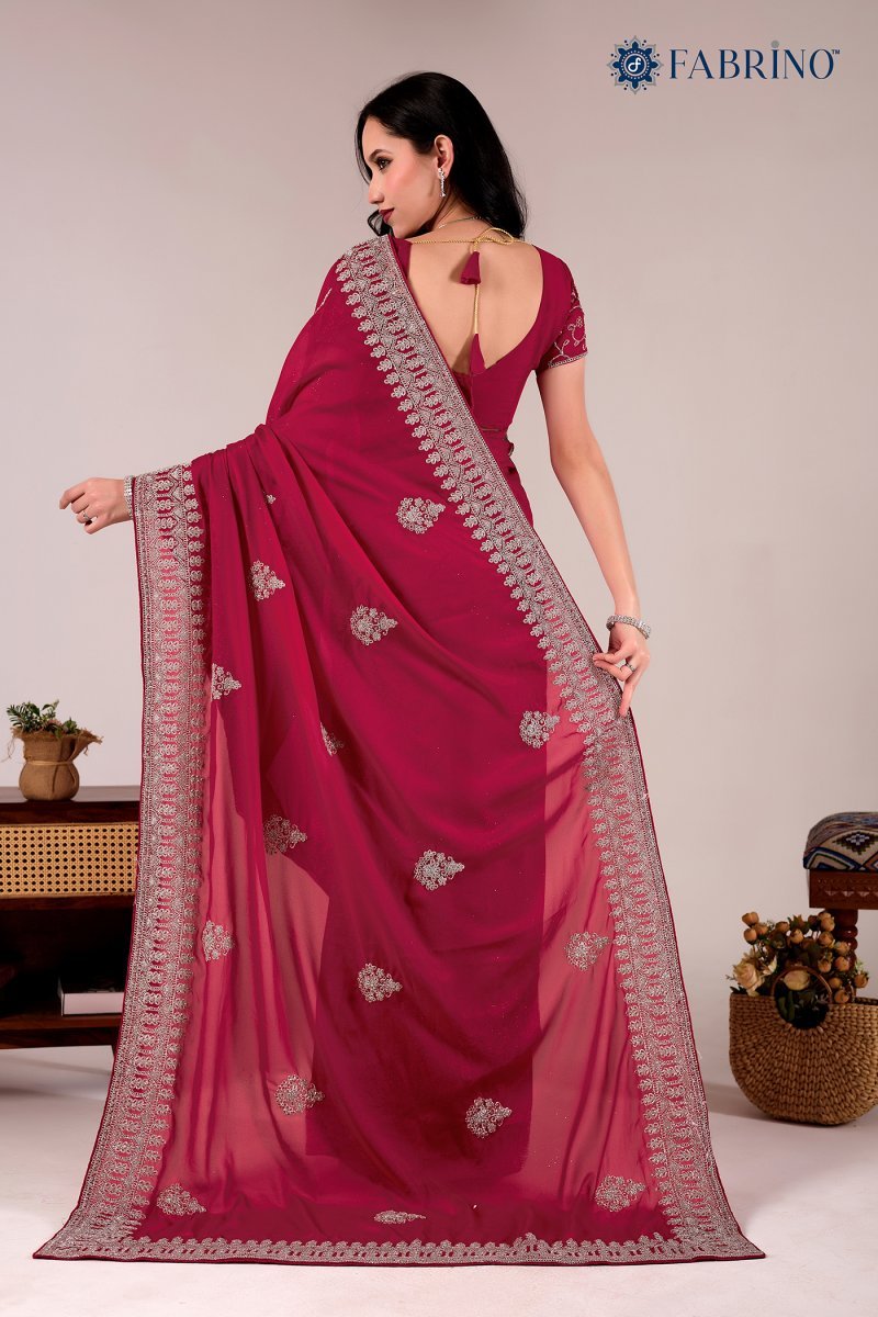 Rani colour Embroidered Cording Work Saree with Silver Zari Work