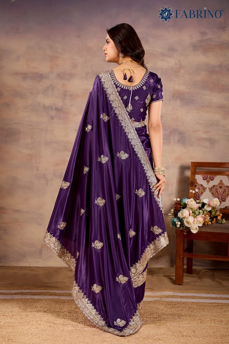 Embroidery cording work with jarkan diamondSaree Length : 6.50 cuttBlouse Length : full blouse heavy like front back sleeveOccasion : wedding seasonSaree fabric : ice georget (chocolate)