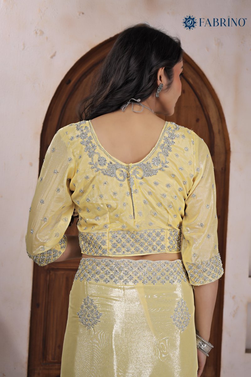 Embroidery cording work with jarkan diamondSaree Length : 6.50 cuttBlouse Length : full blouse heavy like front back sleeveOccasion : wedding seasonSaree fabric : ice georget (chocolate)